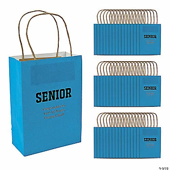 β’ Easy Gift Wrapping: These sturdy gift bags are suitable for holding a variety of presents and come with easy-to-carry handles. They make wrapping any gift easy breezy!β’ Quality: These stylish gift bags are sure to make your present stand out from the pack. Just add some tissue paper for a beautiful gift presentation!β’ Say Thank You with Sweets: Are you looking for an easy way to thank the people in your life? These multipurpose bags filled with great snacks are a sweet way to spread appreciation among party guests, students and teachers!Product Description:Give a gift to graduating seniors using these kraft paper gift bags. To make the gift more meaningful, add some customized text to the front. These personalized bags are the ideal way to give graduating seniors a small present to honor their accomplishments. Personalize with 3 lines of text.Size: 6 1/2″ x 3″ x 9″Quantity: 48Material: PaperΒ© OTC