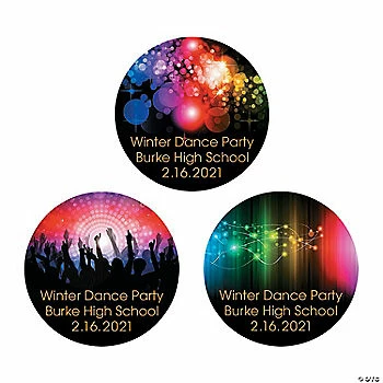 Bust a big move like it’s going out of style! These Personalized Dance Party Favor Stickers are perfect favors for an event where the hottest place to be is on the dance floor, or you could use them to seal invitation envelopes. Get them customized with the event’s name and date or with a message of your choice! Personalize with 3 lines of up to 18 characters/spaces on lines 1 and 2 and up to 10 characters/spaces on line 3. Vinyl. (144 pcs. per unit) 2″ diam. © OTC